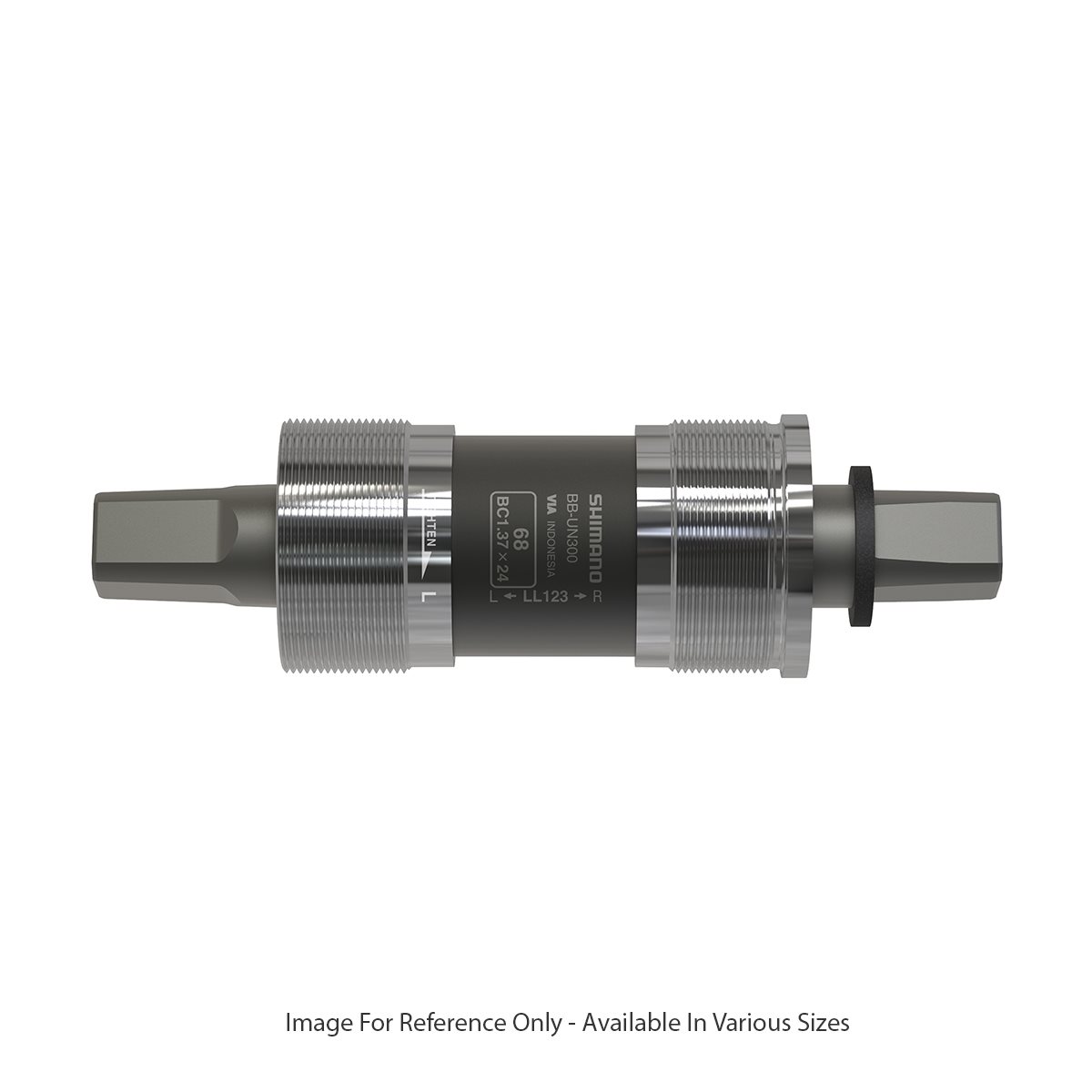 Shimano BB-UN300 nelikanttikeskiö. Sopii BSA 68mm tai 73mm keskiömuhveihin. JIS-standardin mukainen viiste. Materiaali alumiini/teräs.