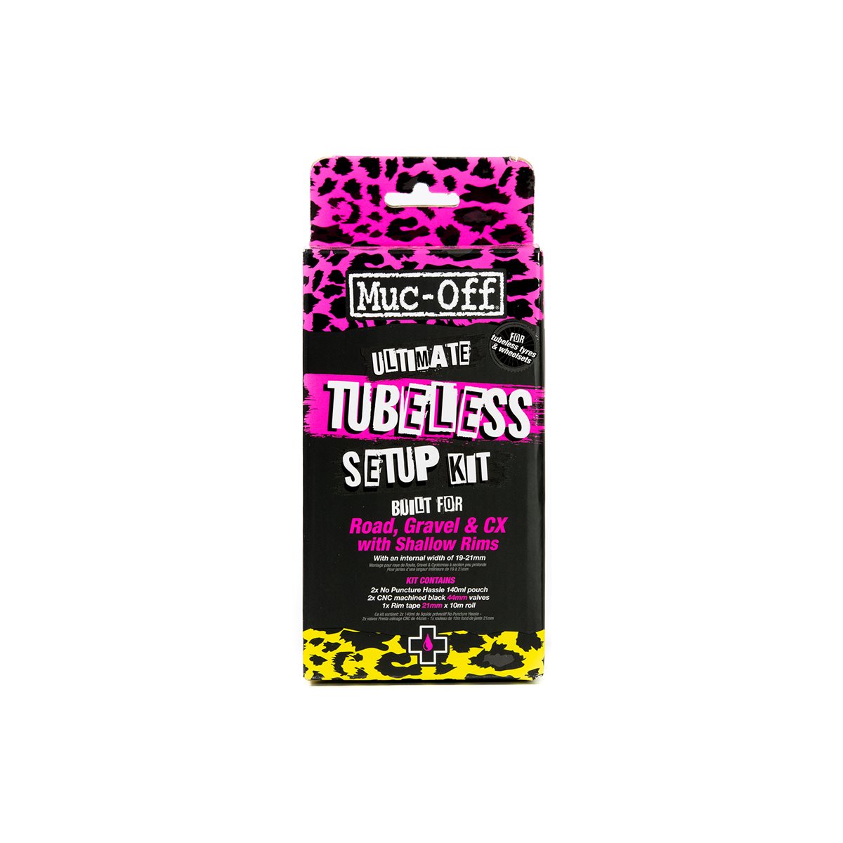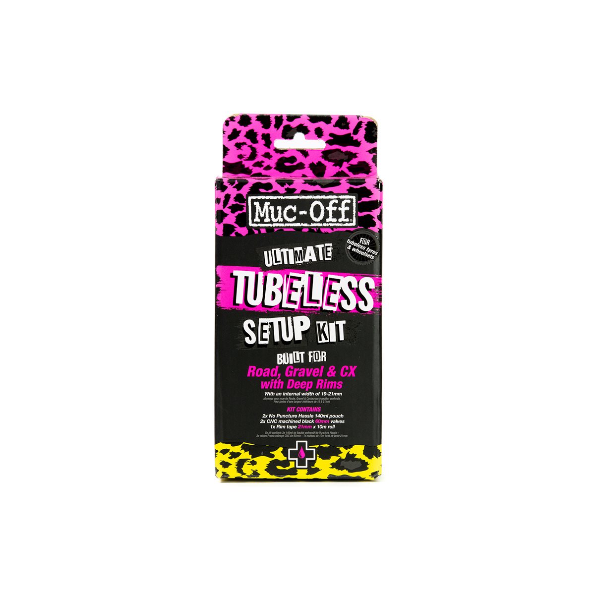 Muc-Off Ultimate Tubeless -pakkauksen avulla voit unohtaa reiät ja puristuslitteet. Pakkaukseen kuuluu kaikki tarpeellinen tavallisten clincher-vanteidesi muuntamiseksi tubeless-järjestelmäksi. Erityisesti maantiepyöriin suunnitellut 60 mm:n venttiilivarret takaavat täydellisen sopivuuden ja vaivattoman asennuksen.