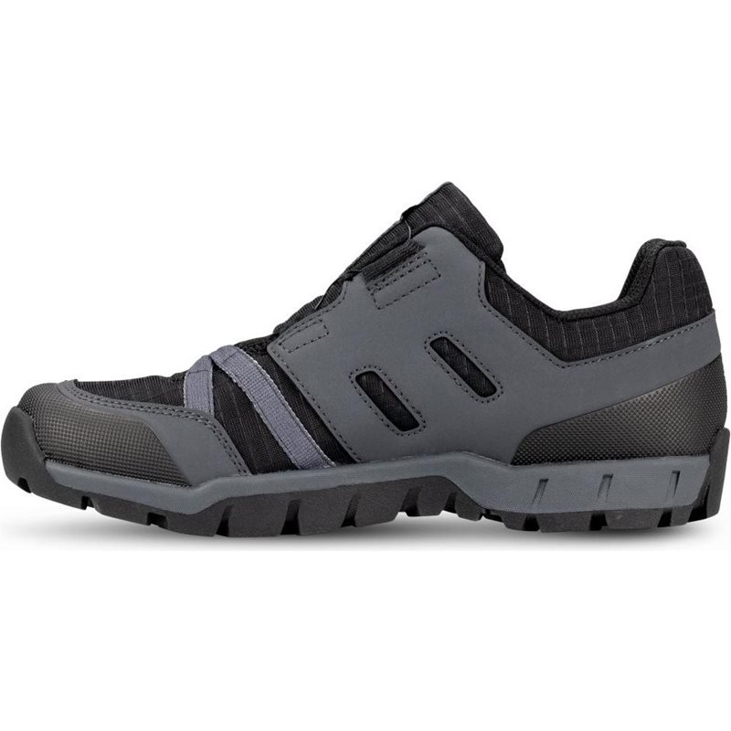 Vahva päällisosa on valmistettu useista erilaisista synteettisistä materiaaleista luomaan vankan kestävyyden, korkean mukavuuden ja tehokkaan tuuletuksen, jotta vältät hikoiluilta jaloilta. Kätevän kiinnitysjärjestelmän (BOA L6) ansiosta kenkä istuu kuin valettu jalassa ja voit helposti säätää, kuinka tiukasti tai löysästi haluat sen istuvan. Lasikuidulla vahvistettu nylonpohja jäykkyysindeksillä 6 yhdessä Sticki Rubber -materiaalin kanssa antaa todella hyvän pidon useimmilla alustoilla ja toimii myös silloin, kun astut pyörästä ja haluat vain kävellä.