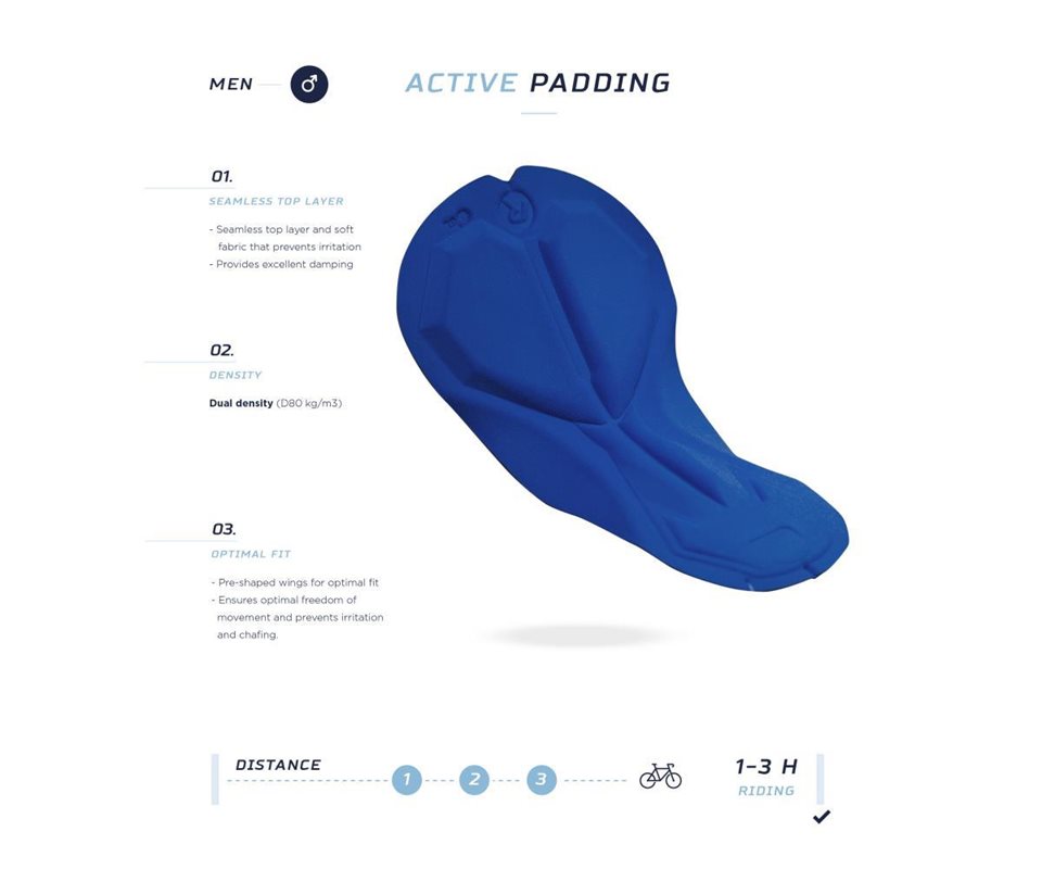 Näissä pyöräilyhousissa on joustava vyötärö säädettävällä nyörinauhalla täydellisen istuvuuden varmistamiseksi. Niissä on myös silikonireuna lahkeenpäissä estämään housujen liukumista ylöspäin pyöräilyn aikana. Housuissa on myös integroitu geelipehmuste istuinosassa lisämukavuutta varten pidemmillä pyöräilymatkoilla.